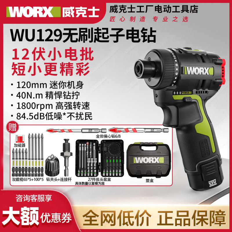 📚 威克士WU129无刷锂电起子机充电式电动螺丝刀多功能家用电钻工具