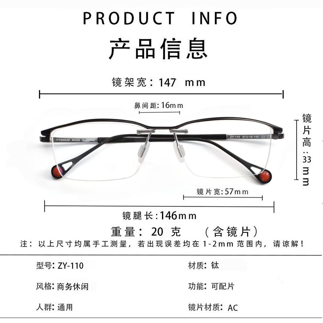 📚 马化腾奥山Ken清行同款ZY-110纯钛男眉框环抱式商务眼镜架Okuyama