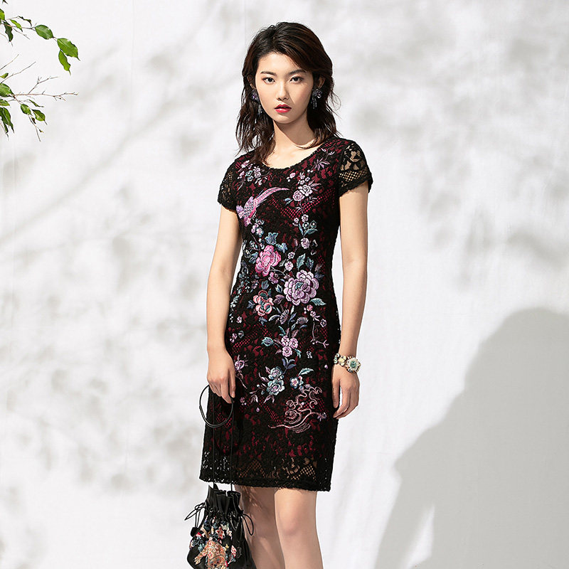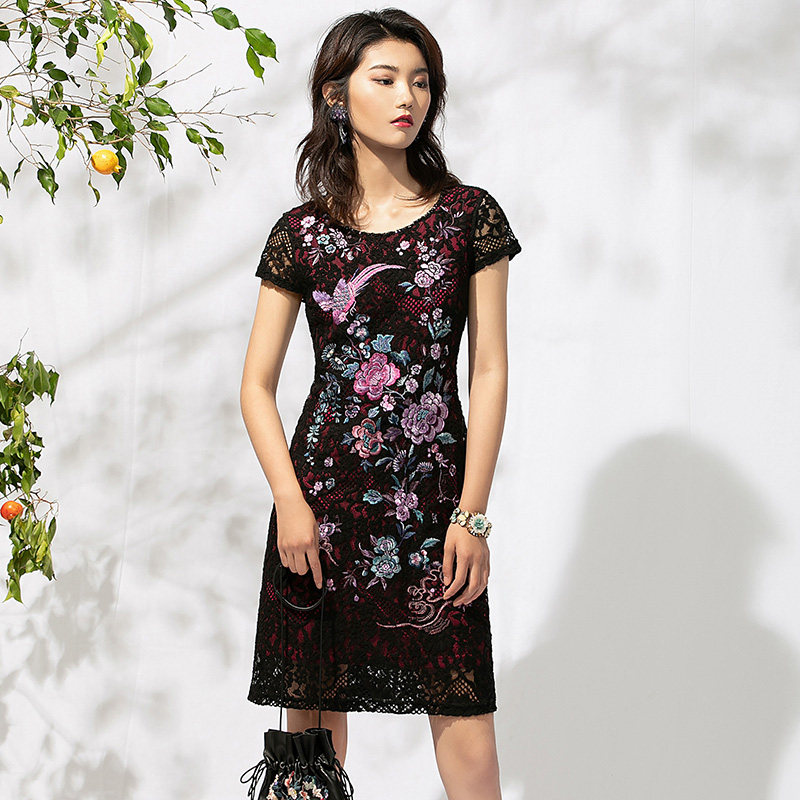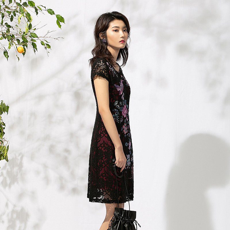 牌女装连衣裙短袖蕾丝绣花