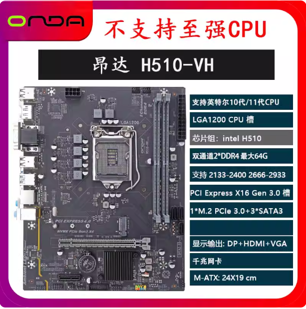 📚 昂达全新H510-VH H510W h510主板DDR4内存支持10/11代CPU