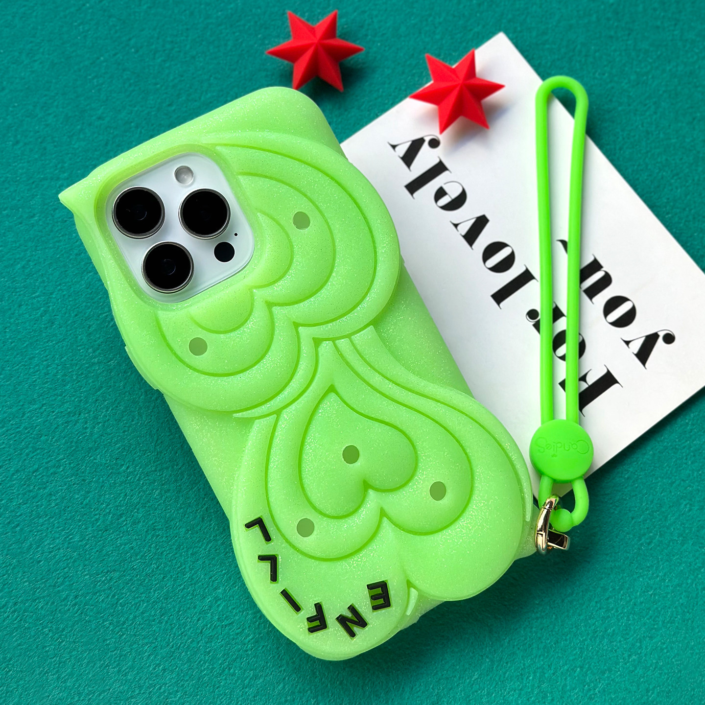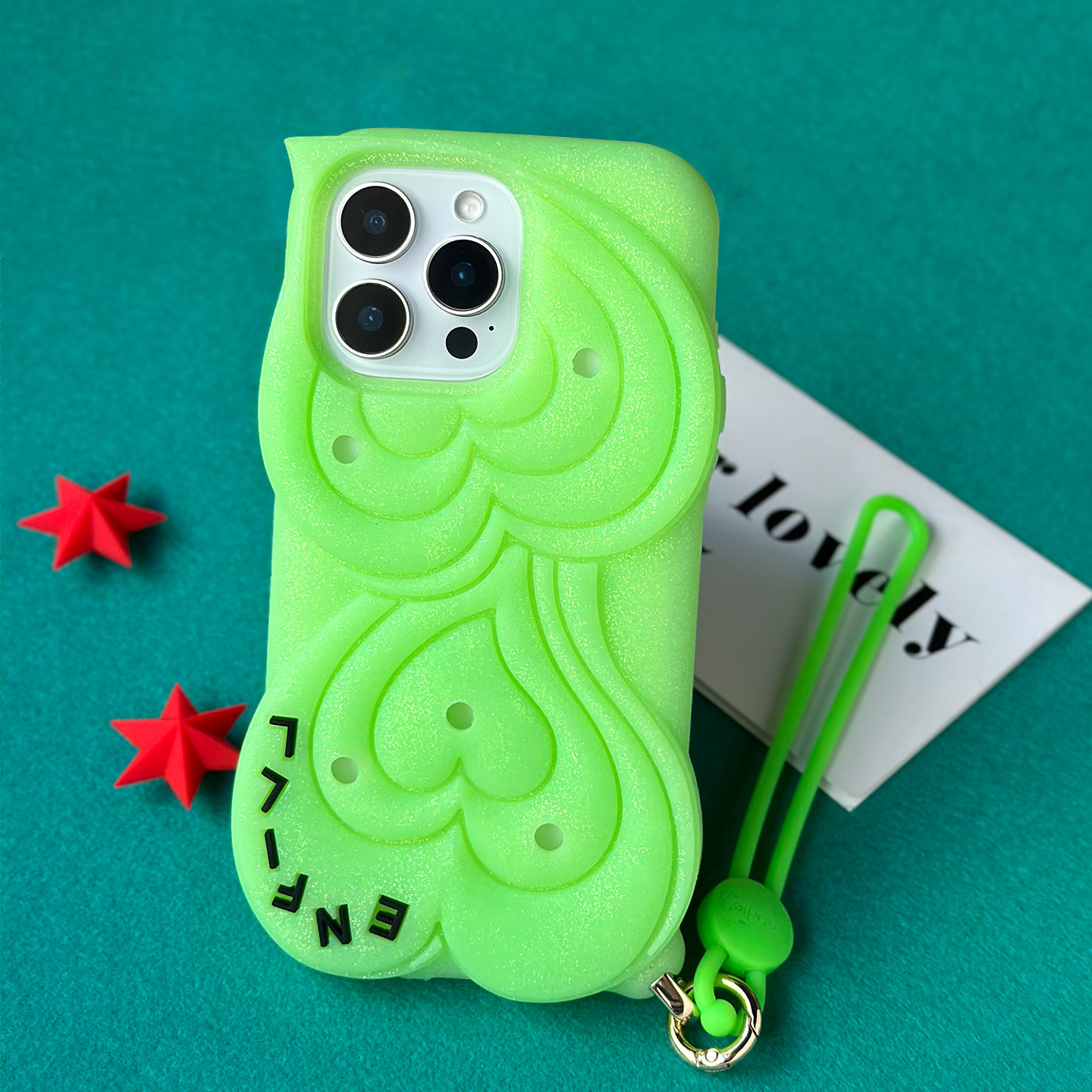 📚 Candies原创个性iPhone15ProMax通用闪粉绿/黄/蓝DIY硅胶洞洞手提壳