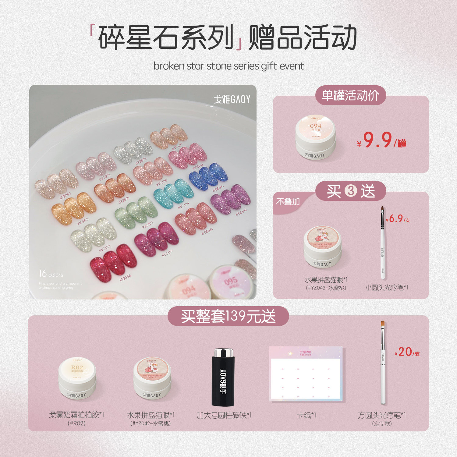 📚 gaoy戈雅幼崽罐碎星石指甲油胶2026年新款爆闪碎钻美甲
