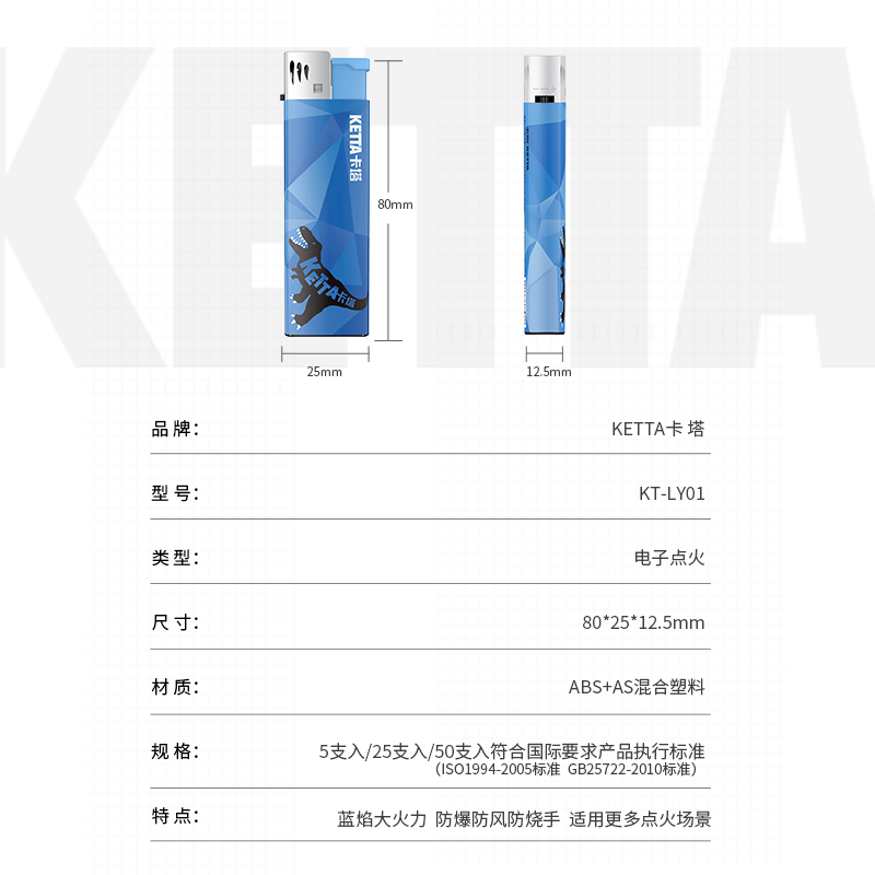 📚 恐龙KETTA卡塔原装蓝焰直冲火焰电子防风打火机抗摔耐高温时尚