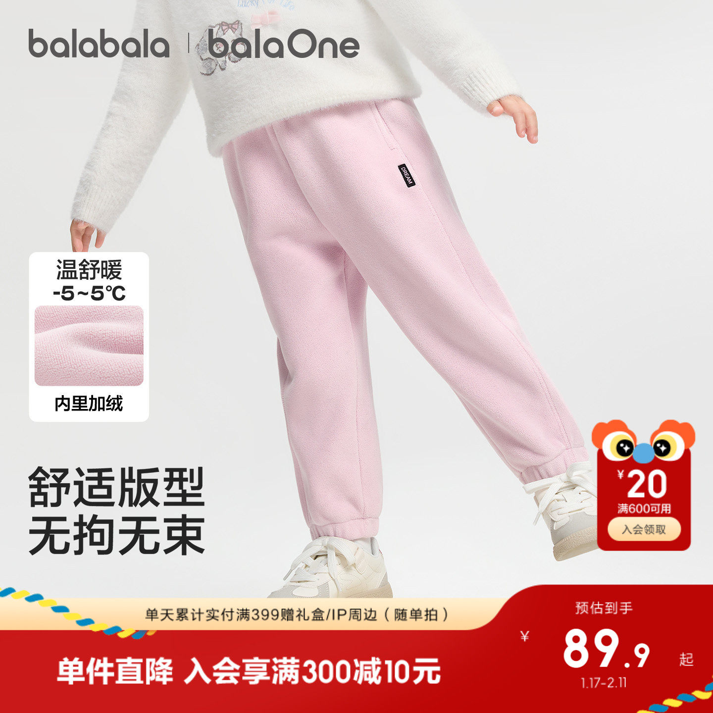 巴拉摇粒绒男童女童长裤