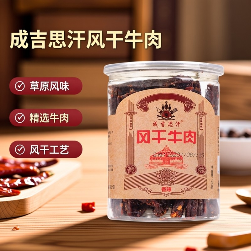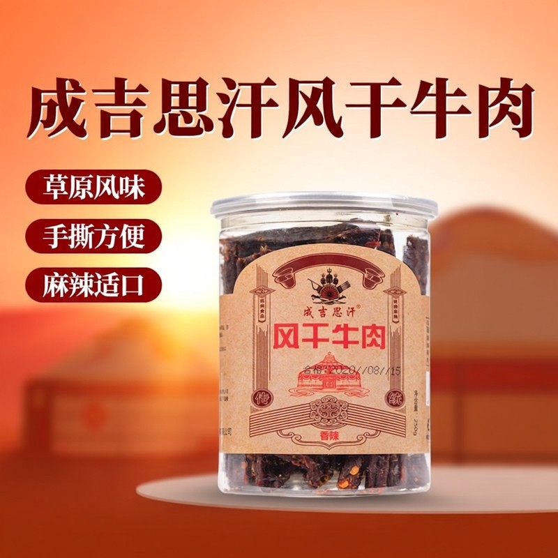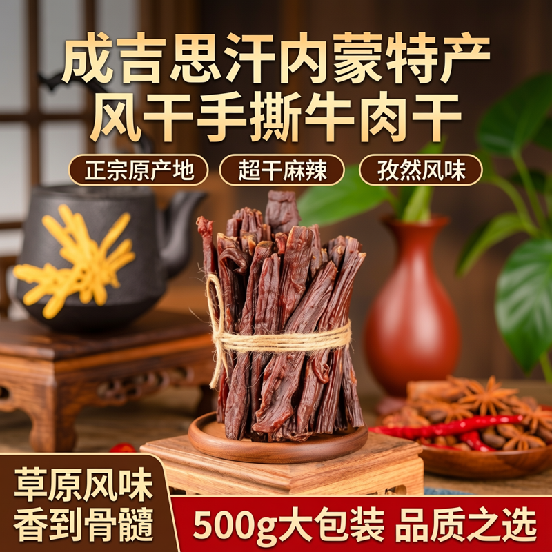 📚 成吉思汗内蒙特产正宗原产地风干手撕牛肉干超干麻辣孜然味500g