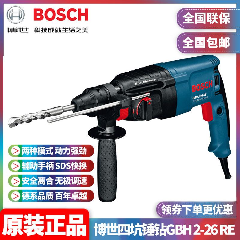 📚 正品博世BOSCH工业级两用轻型家用可调速四坑冲击电锤钻GBH2-26RE