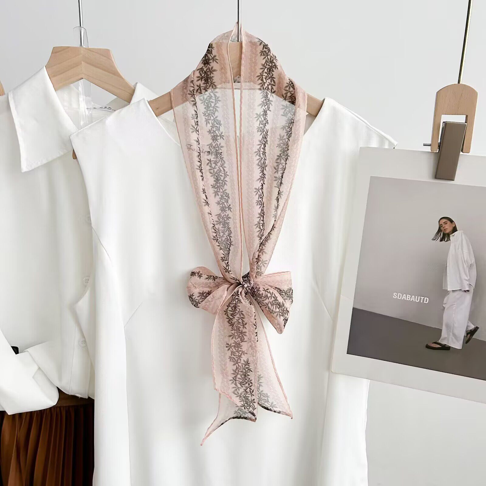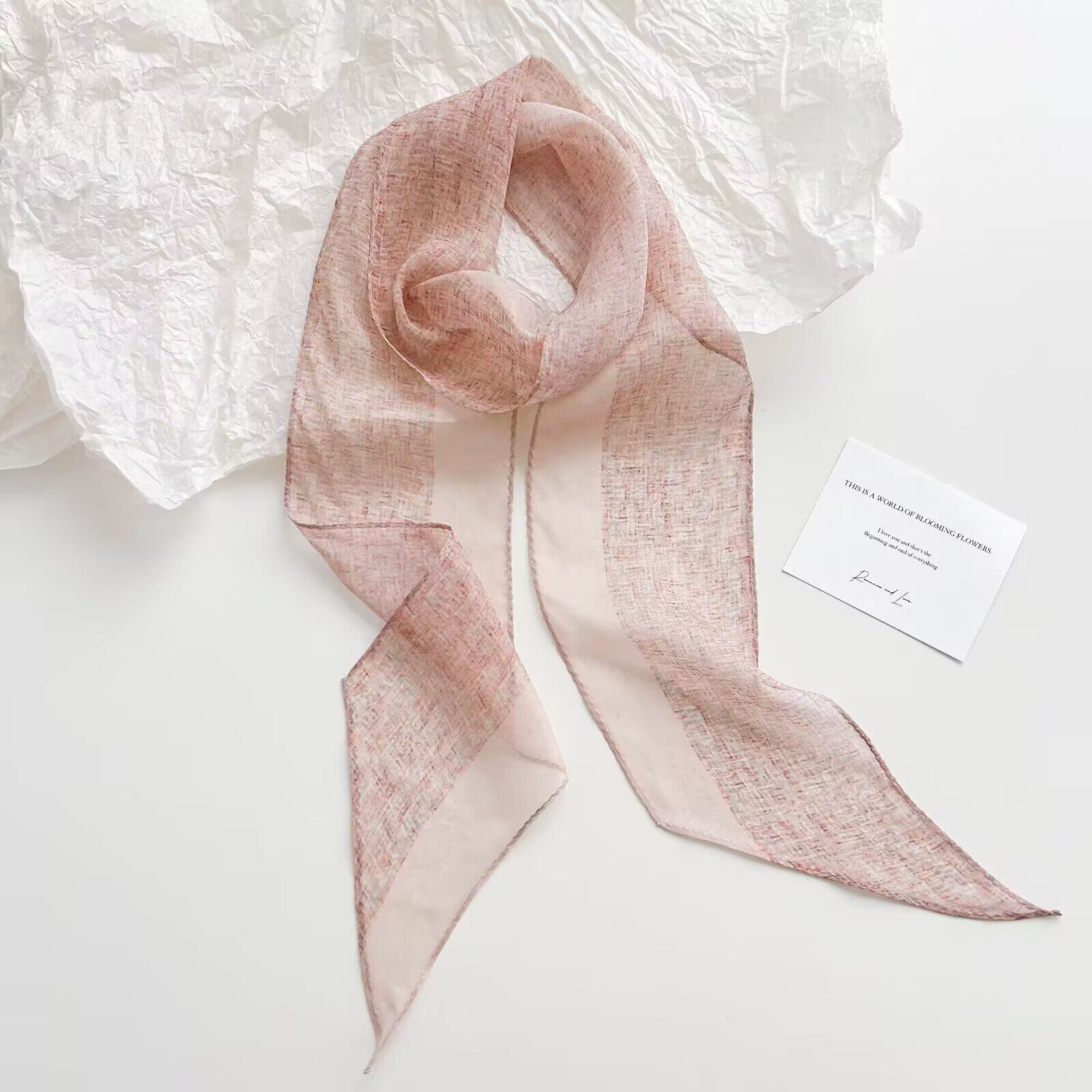 📚 100桑蚕丝粉色乔其纱飘带女长条丝巾系脖高级感绑包发带搭配衬衫
