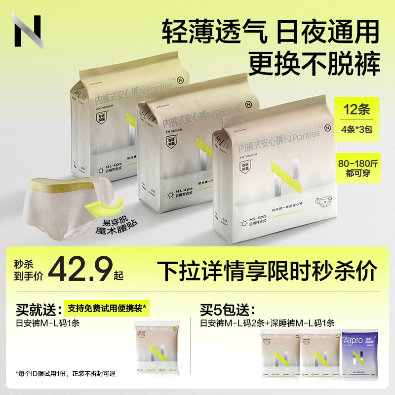 📚 小N安睡裤安心不脱裤大码早安日安产妇拉拉裤经期防漏魔术贴bbc