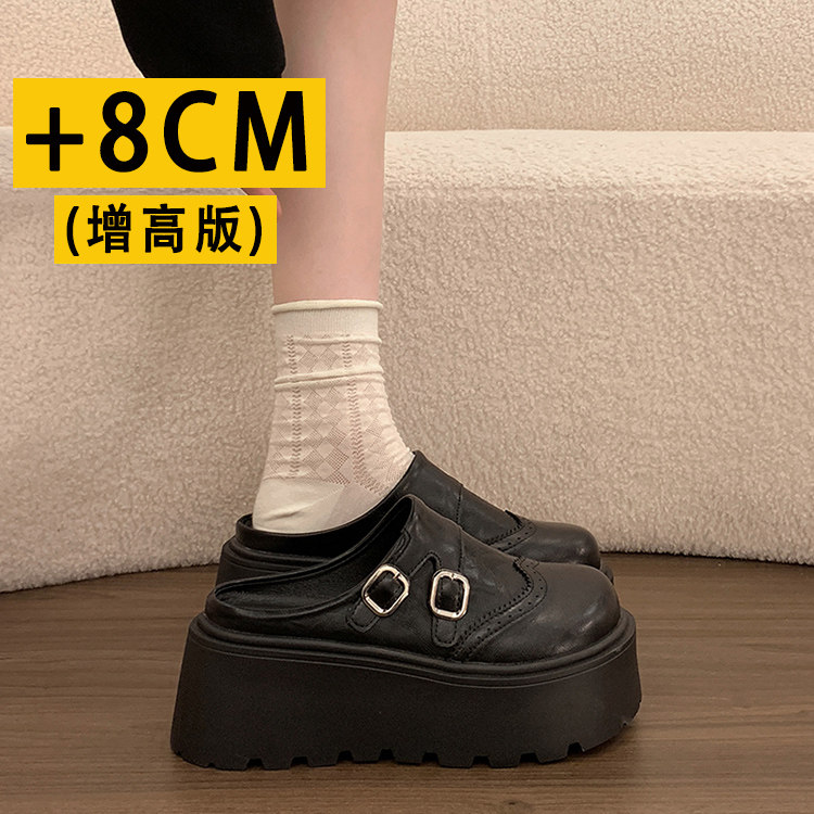 📚 厚底内增高8CM小个子勃肯包头半拖鞋女外穿2026春季一脚蹬小皮鞋