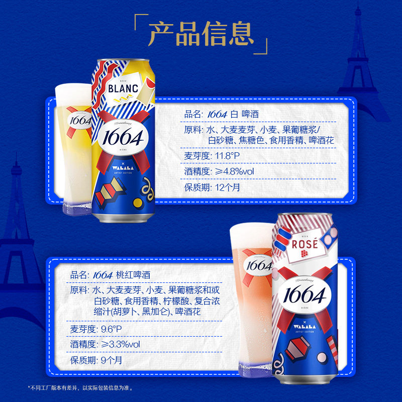 📚 法式1664啤酒桃红玫瑰覆盆子果香风味500ml系列精酿整箱圣诞聚会