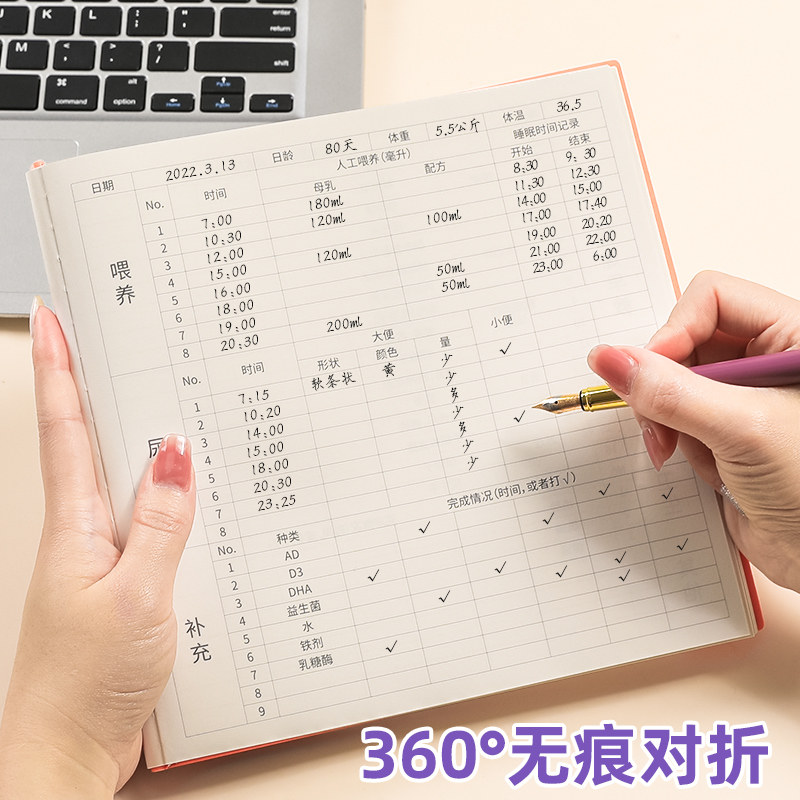 📚 喂养日记本方形软皮笔记本子宝宝成长发育记录本孩子儿童记录册蛇年新生婴儿生活日常作息辅食母乳喂奶记事本
