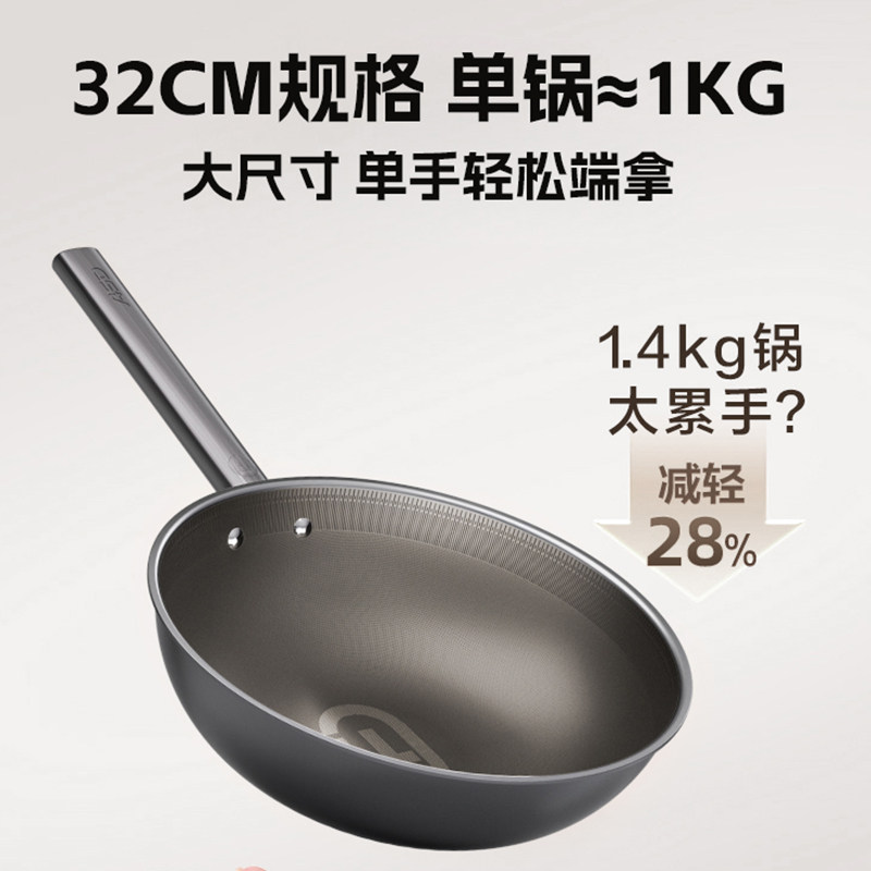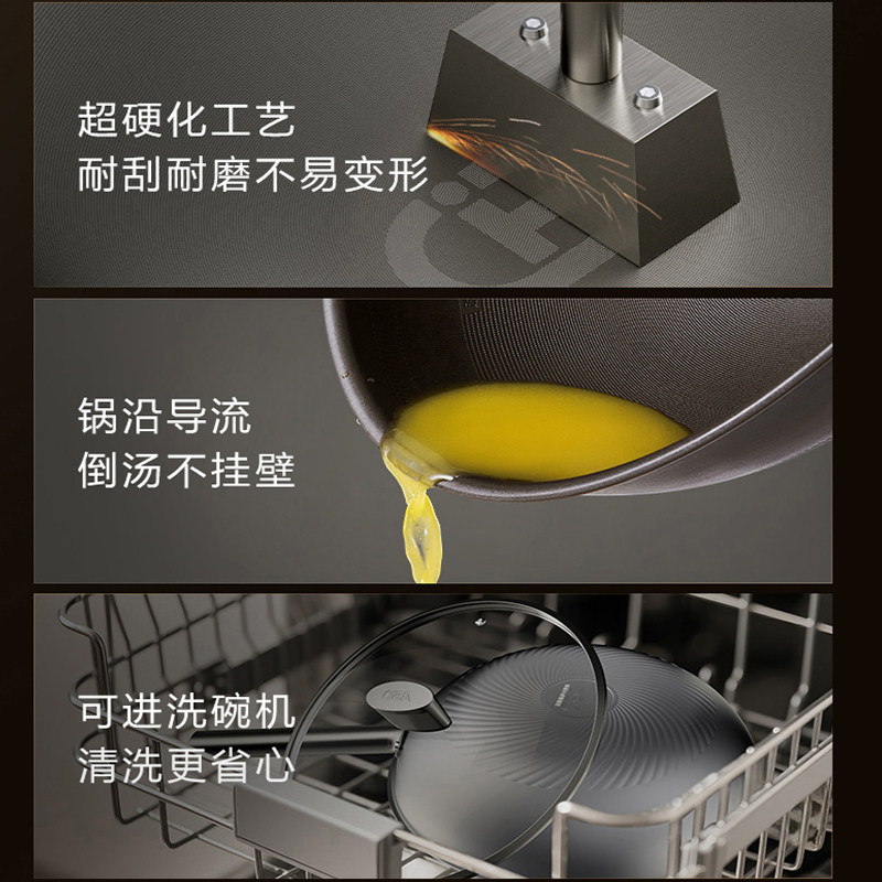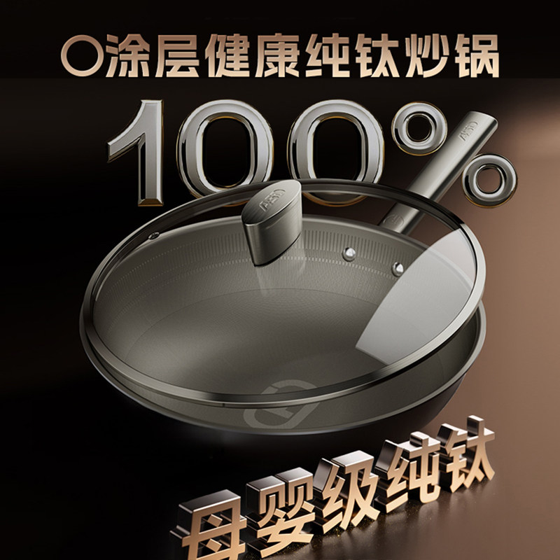 📚 【商超同款】爱仕达无涂层纯钛炒锅不粘锅电磁炉燃气家用炒菜锅