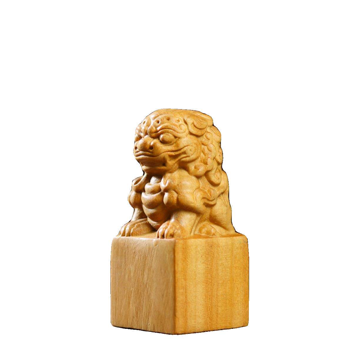 📚 黄杨木狮子印章木雕手把件办公室桌面工艺品摆件汽车饰品抓周官印