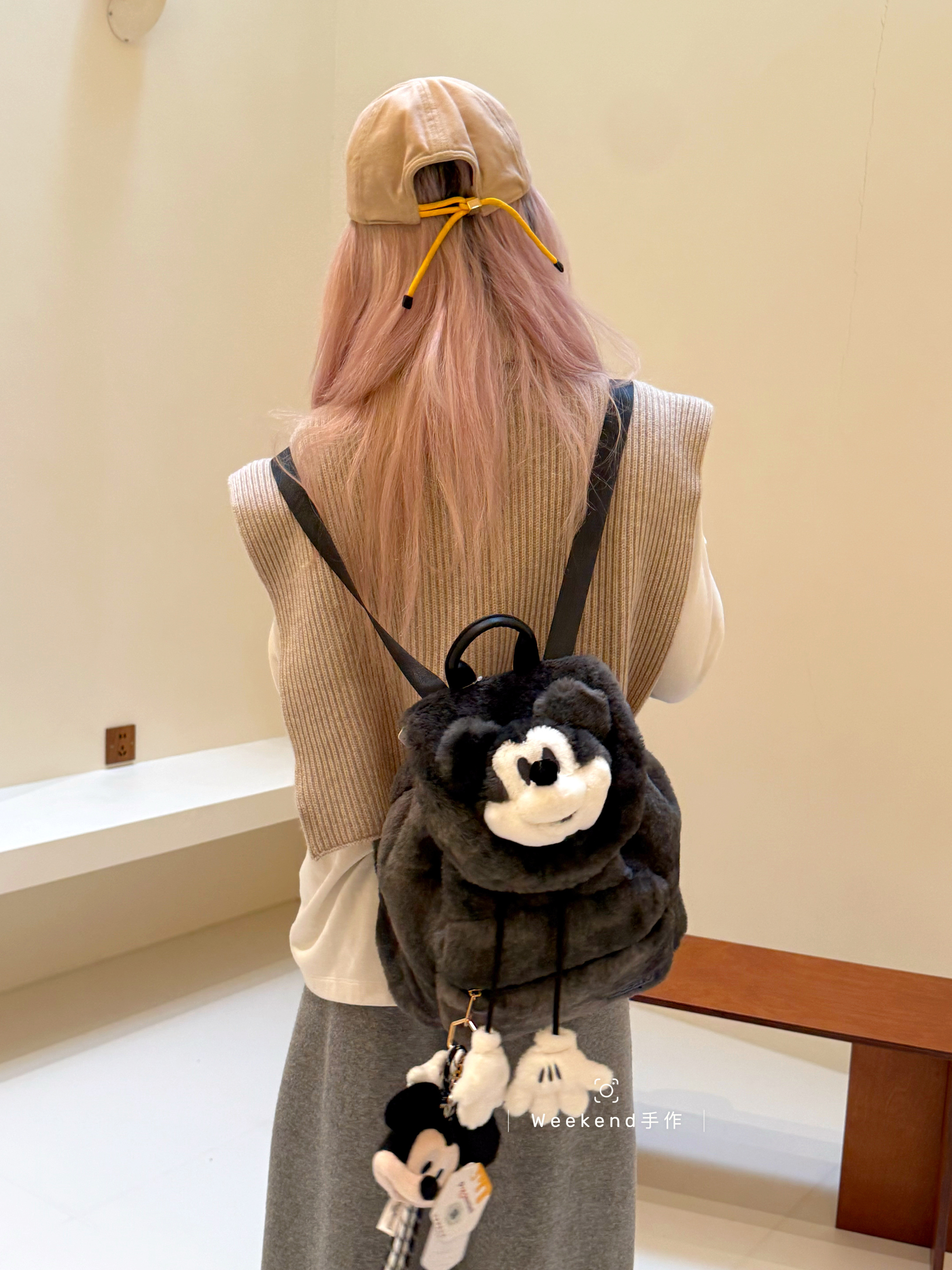 📚 正版米奇卡通毛绒玩偶斜挎包挂件送女友闺蜜冬季时尚百搭礼物