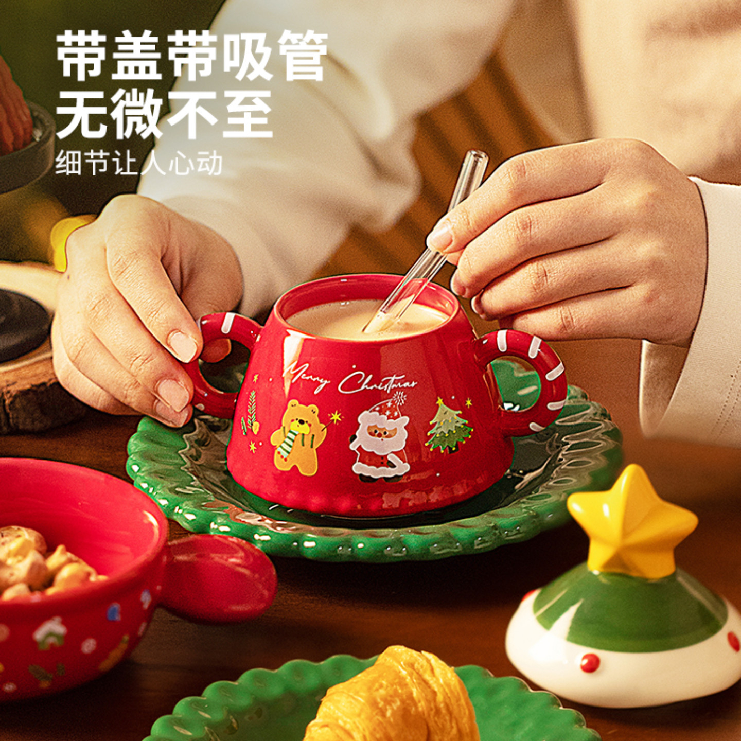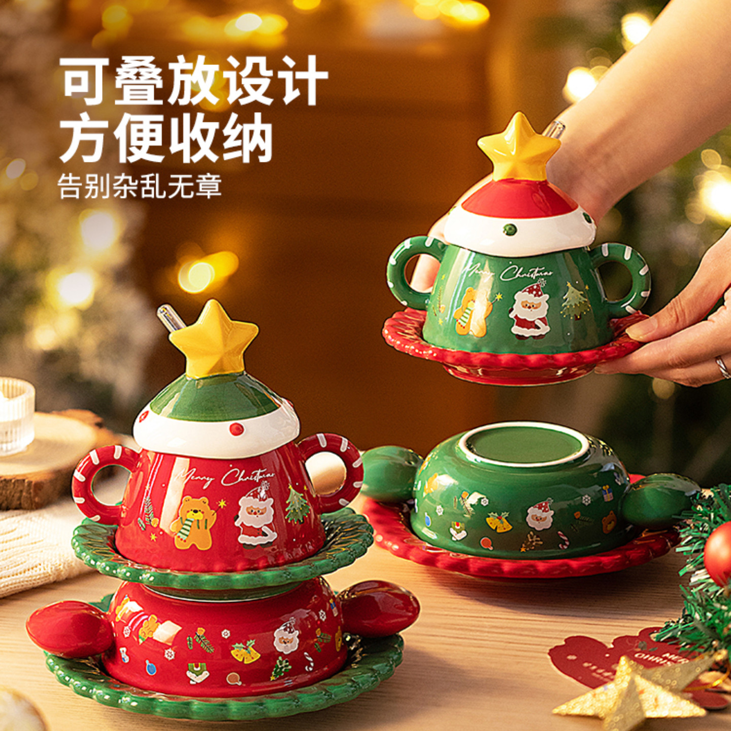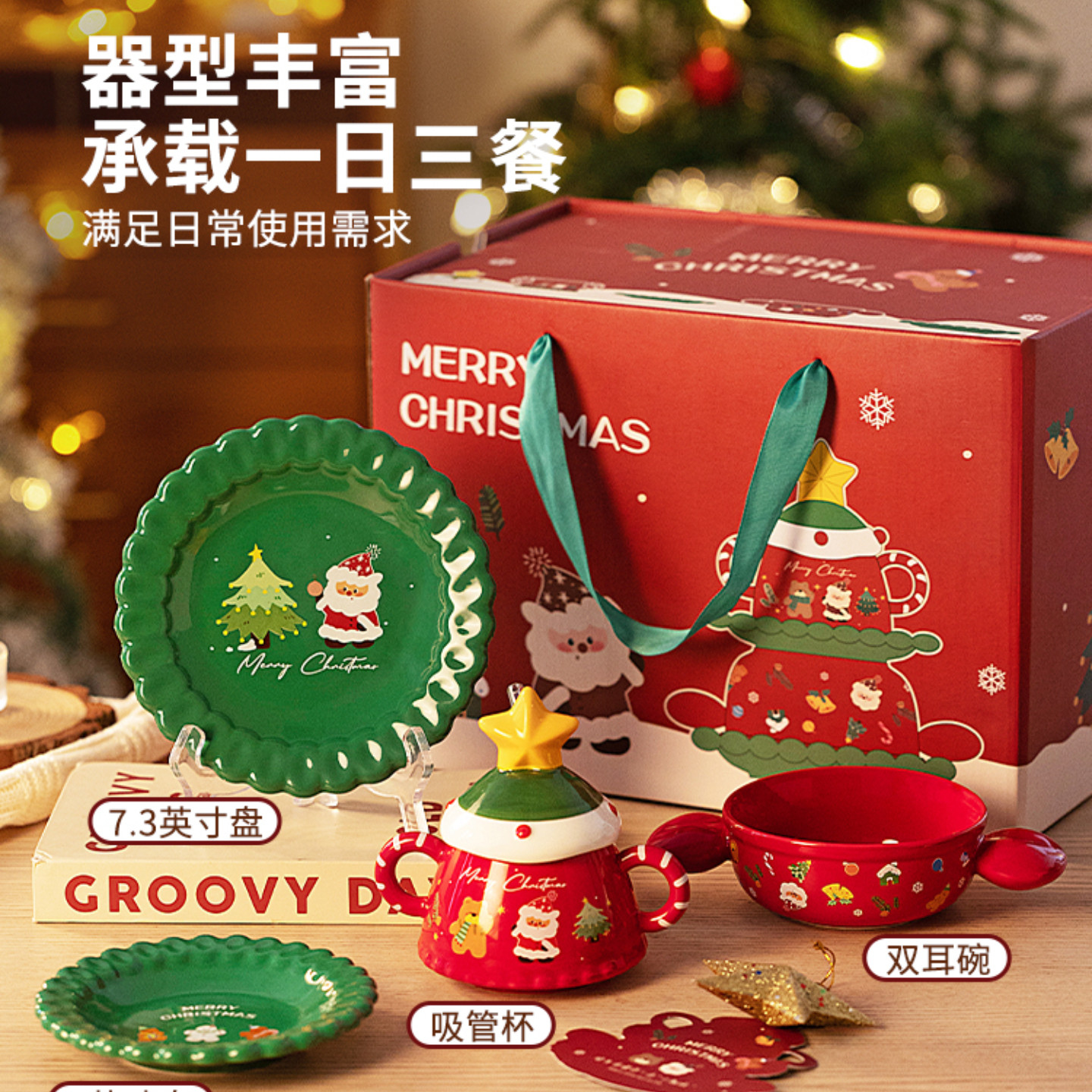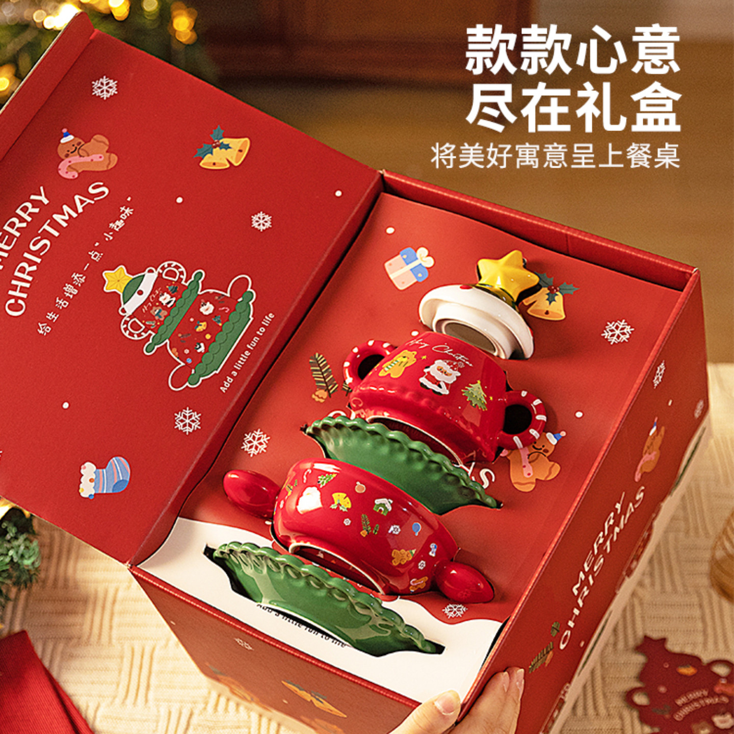 📚 圣诞餐具圣诞节伴手礼套装创意陶瓷杯子礼盒送员工客户级感礼品