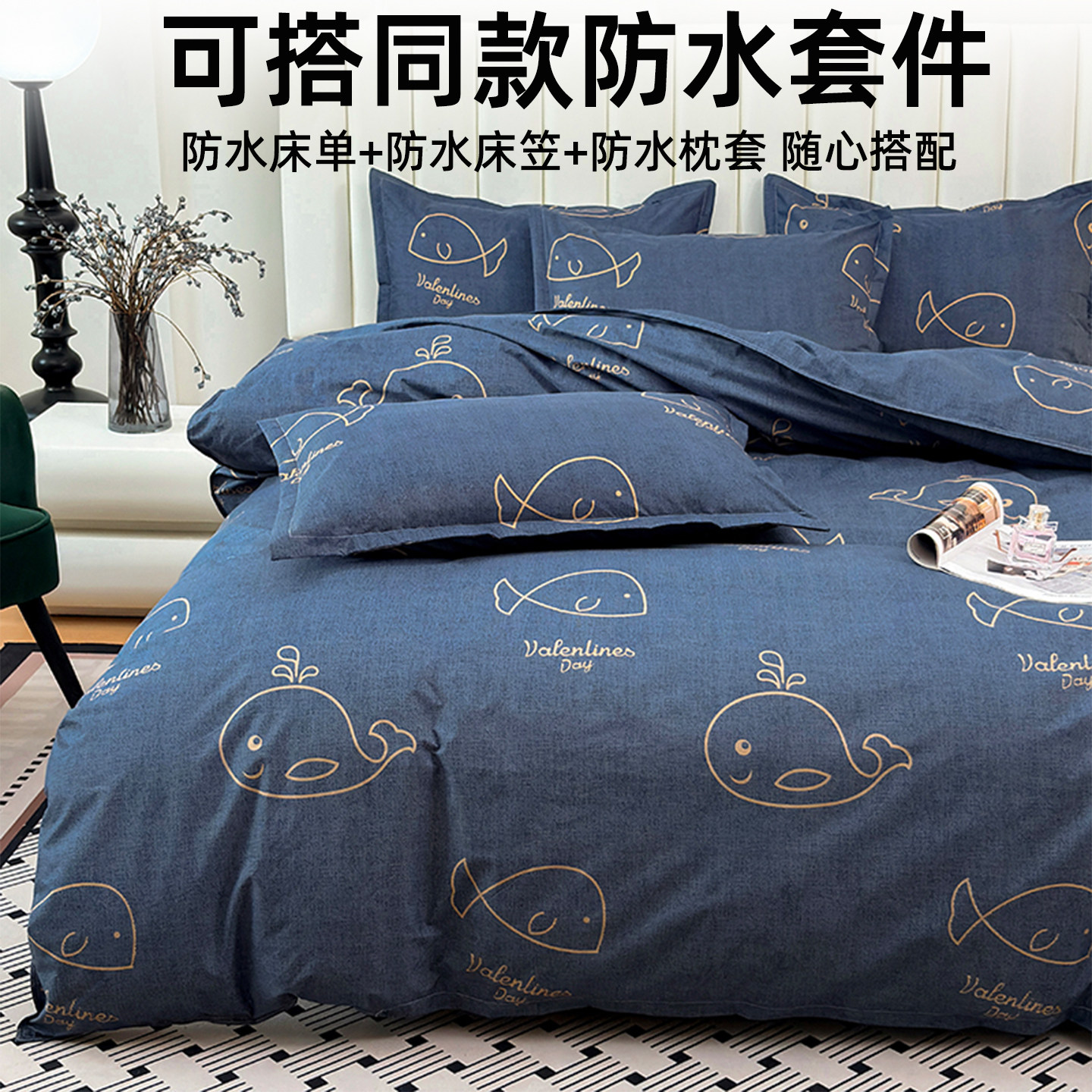 📚 150x200cm被套单件磨毛床单四件套防水隔尿透气可洗双面防脏老人
