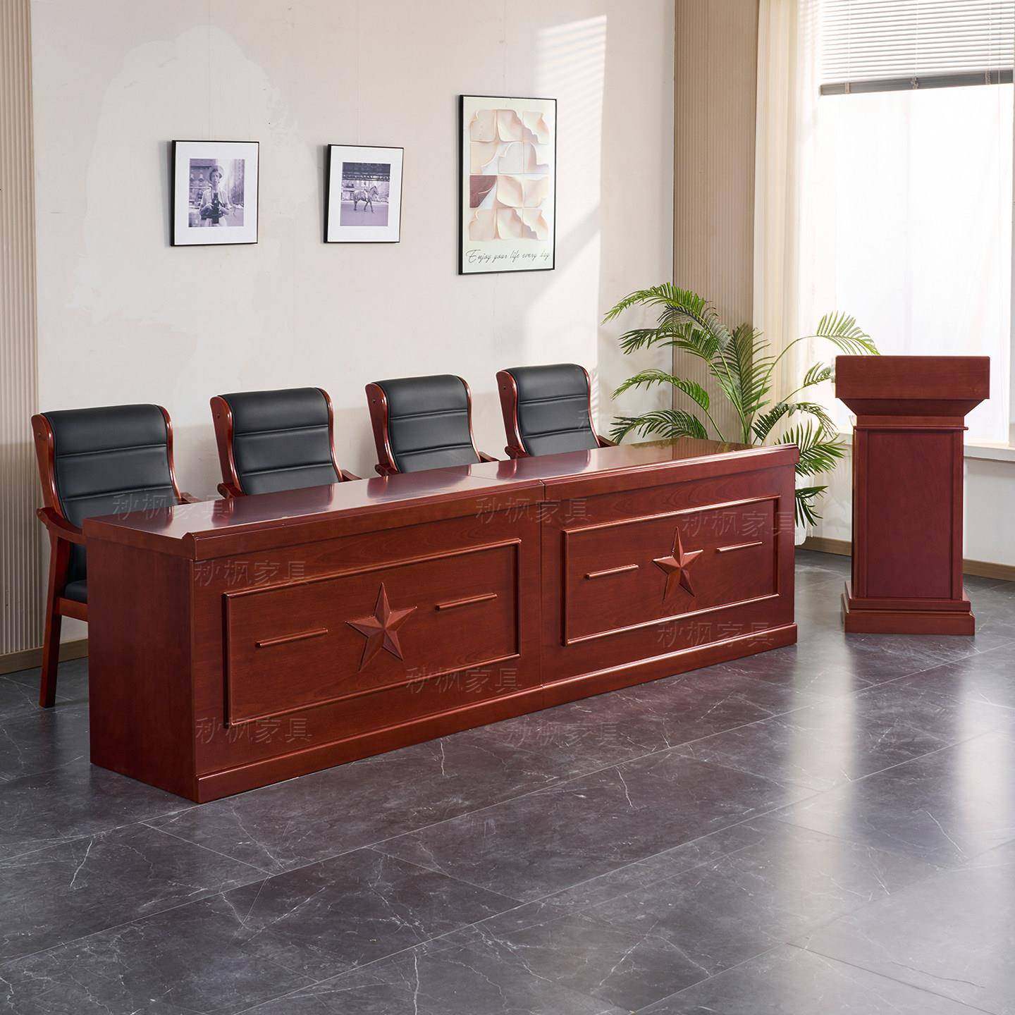 📚 主席台桌椅会议桌条形桌领导发言台油漆实木皮演讲台培训桌长条桌