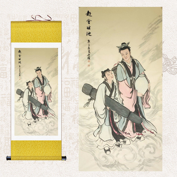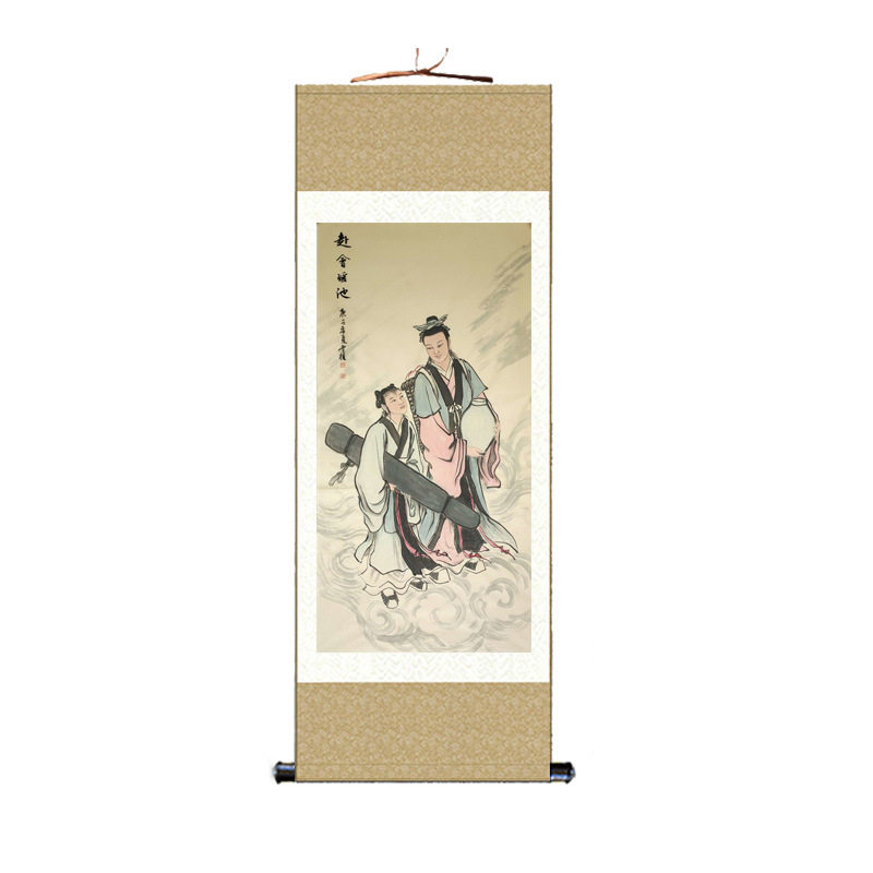 📚 赴会瑶池图挂画新中式书房客厅装饰画茶楼卧室丝绸卷轴画礼品字画