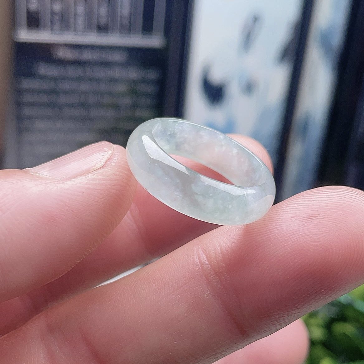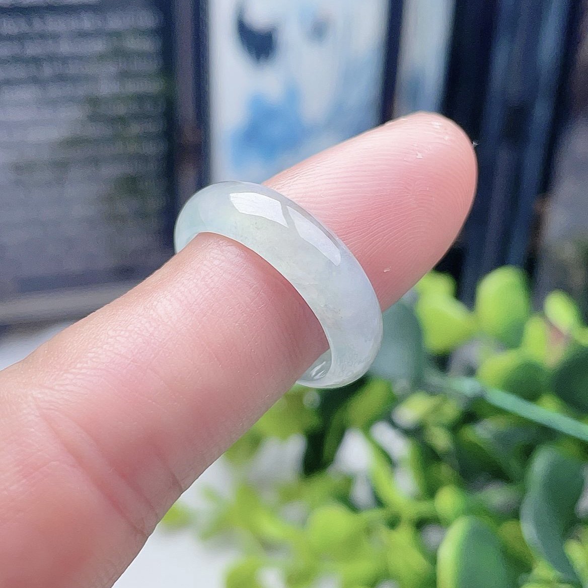 📚 缅甸天然A货翡翠淡绿晴水戒指冰糯宽边甜水绿戒圈肥厚指环玉跑环