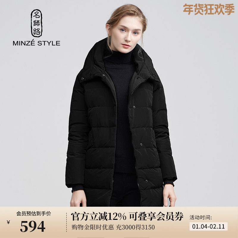 📚 名师路冬季羽绒服女新款轻薄白鸭绒中长款时尚黑色保暖外套