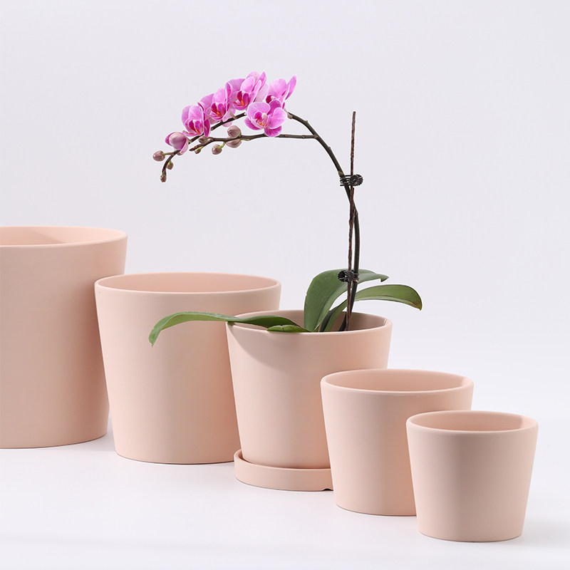 📚 北欧暗调肉粉色陶瓷花盆淡粉大小号素烧透气陶土盆蝴蝶兰多肉绿植