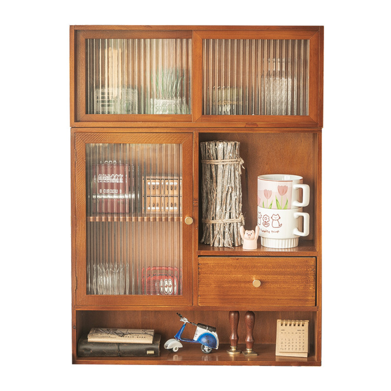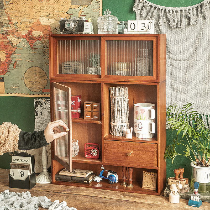 📚 桌上置物架桌面化妆品收纳盒杯子茶具收纳实木桌面柜收纳盒子整理