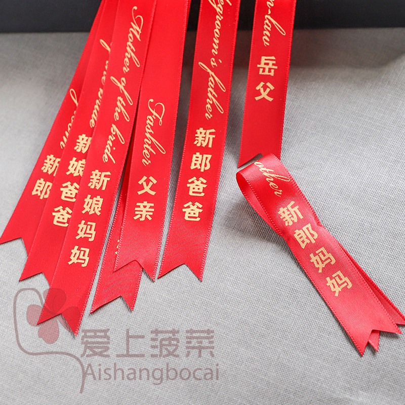 📚 结婚胸花飘带字条父亲母亲新郎新娘伴郎伴娘贵宾迎亲称呼条称谓条