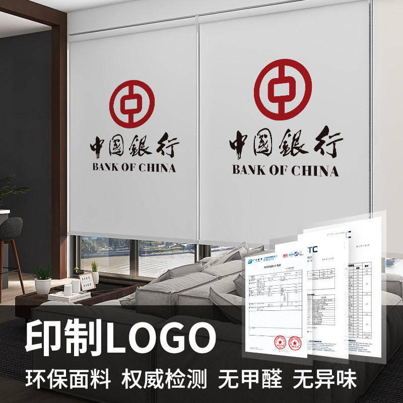 📚 办公室遮阳卷帘定制logo图案窗帘电动卷拉式遮光百叶银行板房工程