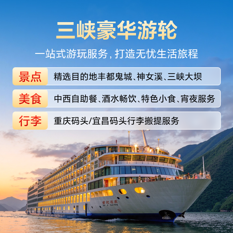 📚 限时优惠长江三峡游轮旅游豪华邮轮旅行重庆宜昌世纪游轮凯歌荣耀