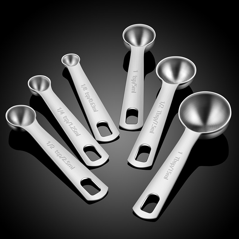 📚 不锈钢量勺套装咖啡豆奶粉勺子厨房烘焙面粉克数计量勺茶匙15ml
