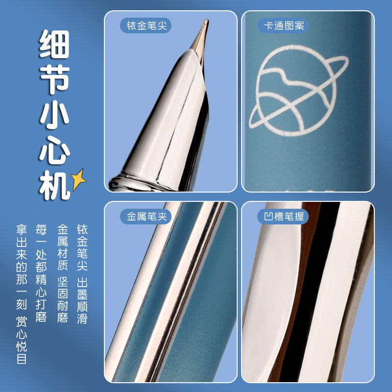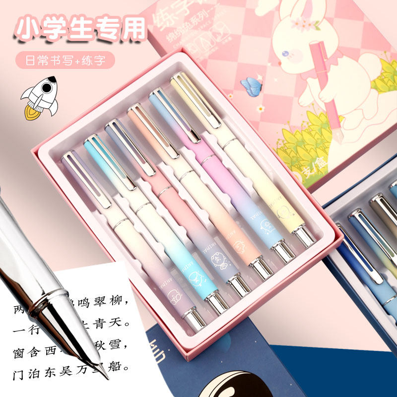 📚 钢笔学生专用小学生三年级练字暗尖正姿男孩女生四五六年级儿童书法练字帖初学者纯蓝墨水可替换墨囊黑色卡通