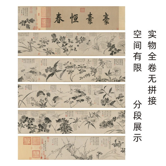 📚 周之冕《百花图卷》国画长卷明代作花鸟艺术微喷高清复制欣赏临