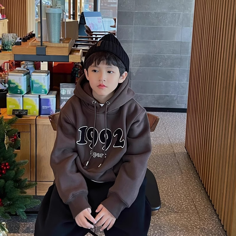 📚 中大童字母印花连帽卫衣男童秋冬款加绒加厚韩版儿童宽松百搭外套