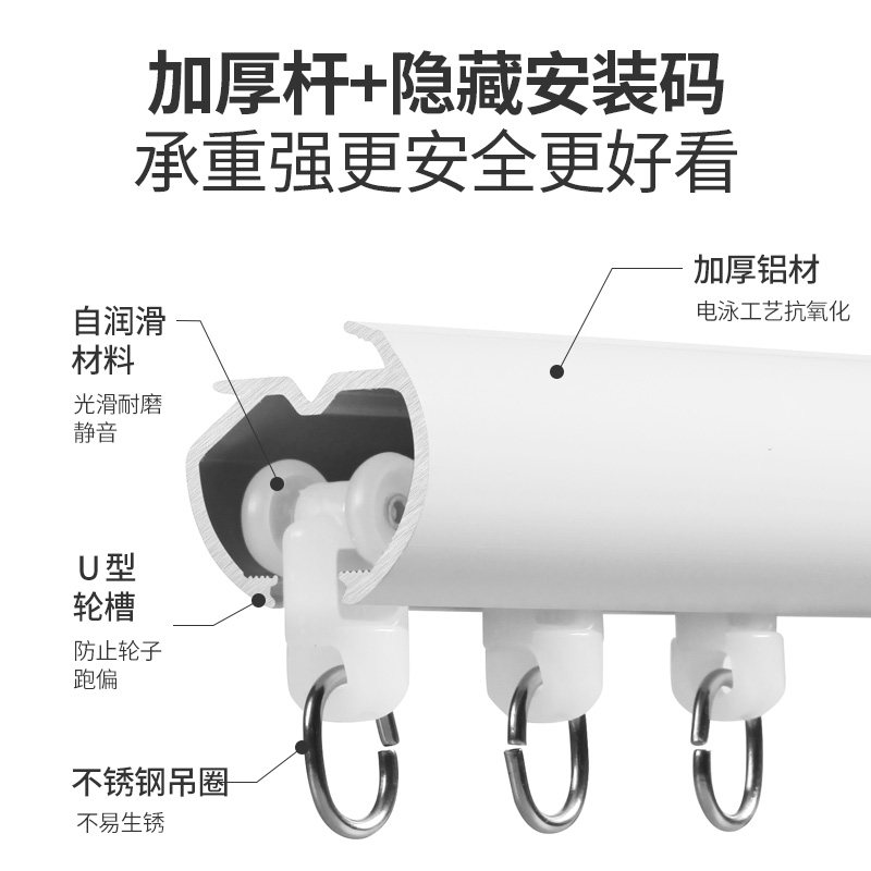 使用体验方面,真的是让人惊喜连连。滑轮滑动顺畅,没有一丝阻力,真的是让人感到非常舒适。而且,这款导轨特别厚实,承重力强,完全不用担心窗帘会因为重量而下滑。👏