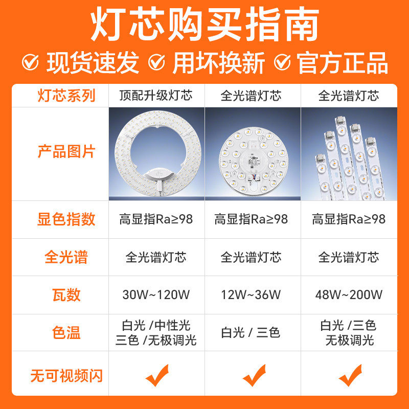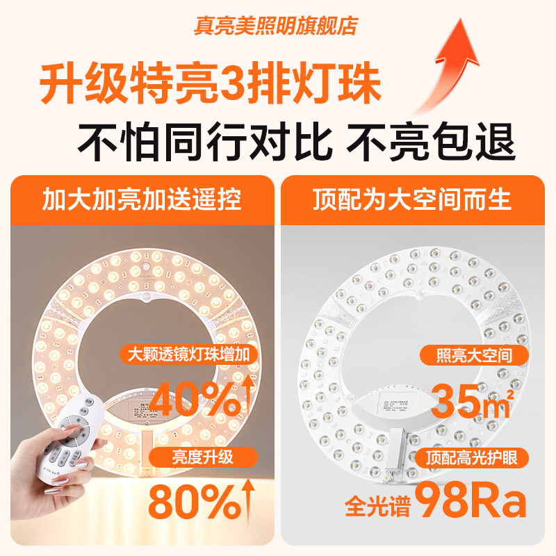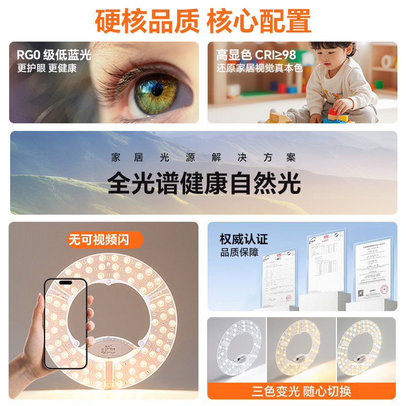 📚 全光谱led灯芯吸顶灯替换光源无极调光模组灯条灯泡卧室圆形灯盘