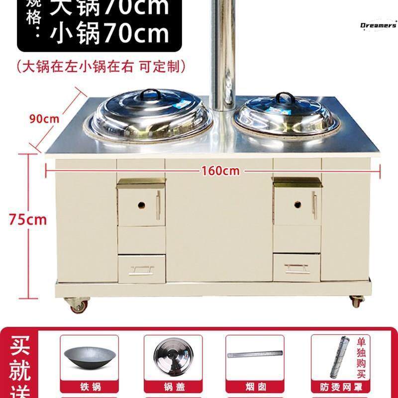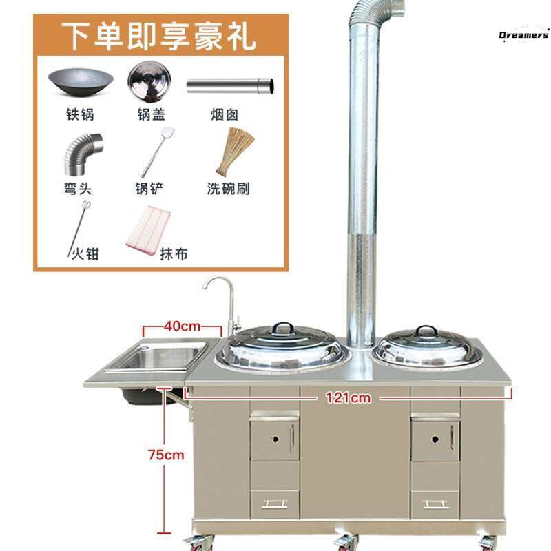 📚 。不锈钢柴火灶家用烧木柴农村新式双灶台节能移动子母双锅土灶u.