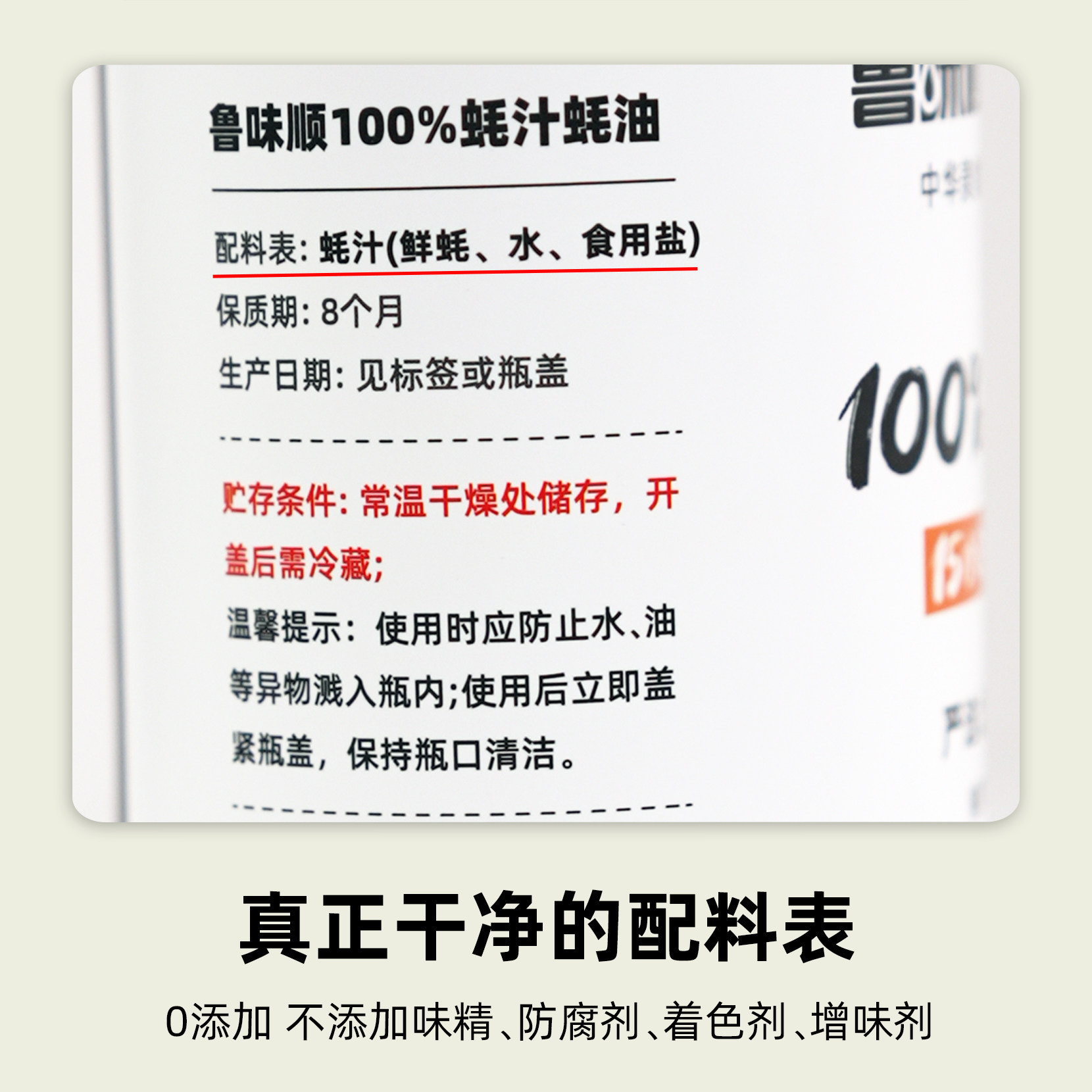 📚 【无麸质】鲁味顺100%蚝汁蚝油0添加特级纯正液体耗油家用百分百