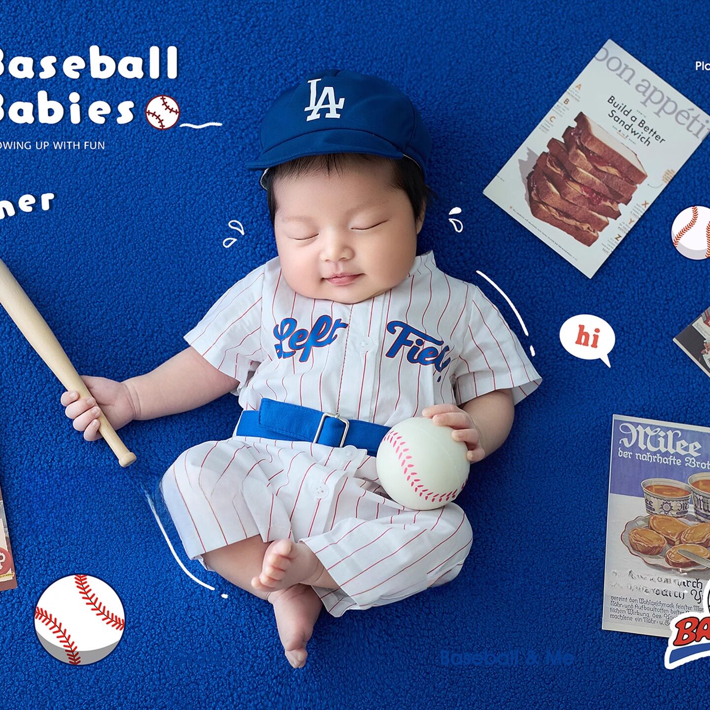 📚 满月婴儿拍照衣服kd新生儿摄影服装影楼初生宝宝运动风棒球主题