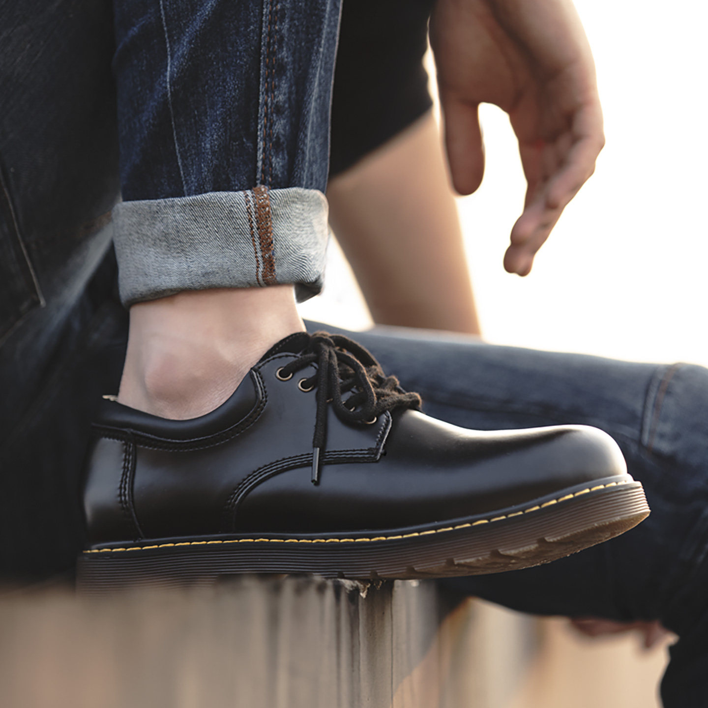 📚 马登英伦风宽头德比男士面试鞋软底低帮马丁靴黑色年轻人休闲皮鞋