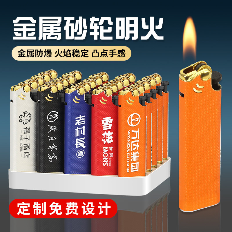 📚 金属明火复古经典纯色可充气印字打火机高颜值家用批发火机砂轮