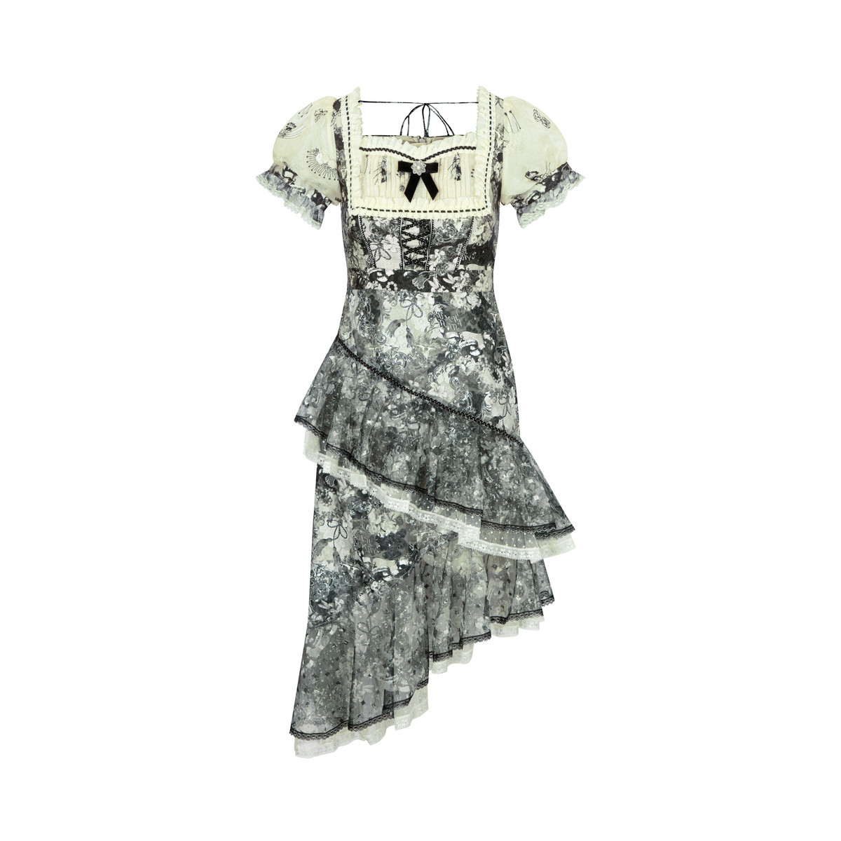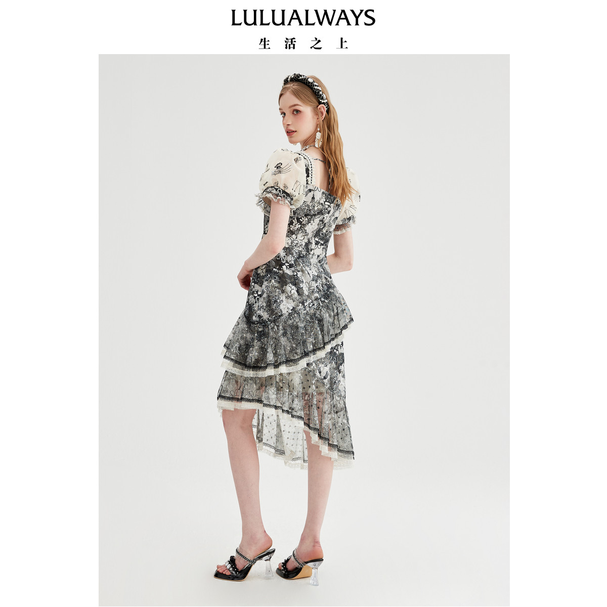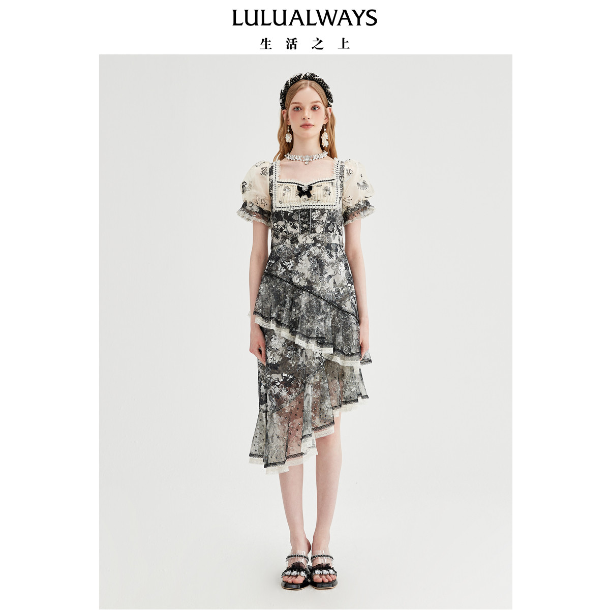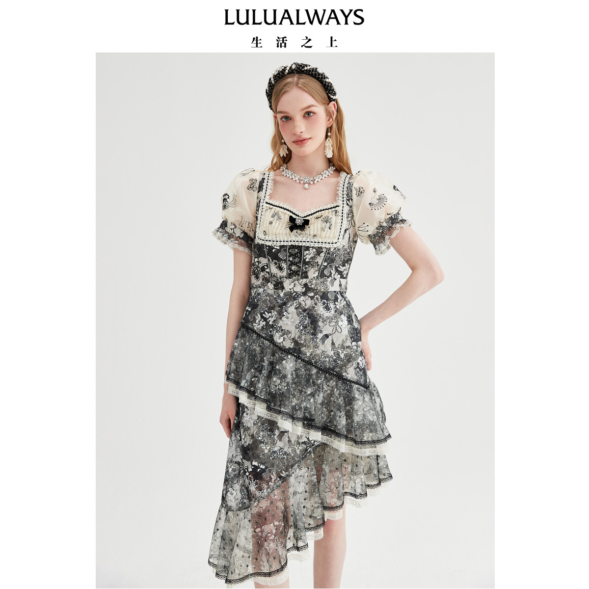 📚 LULUALWAYS【商场同款】绮丽时尚不规则方领层叠连衣裙