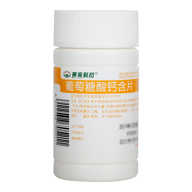 📚 黄海制药葡萄糖酸钙含片儿童口服国药准字官方成人旗舰店正品钙片