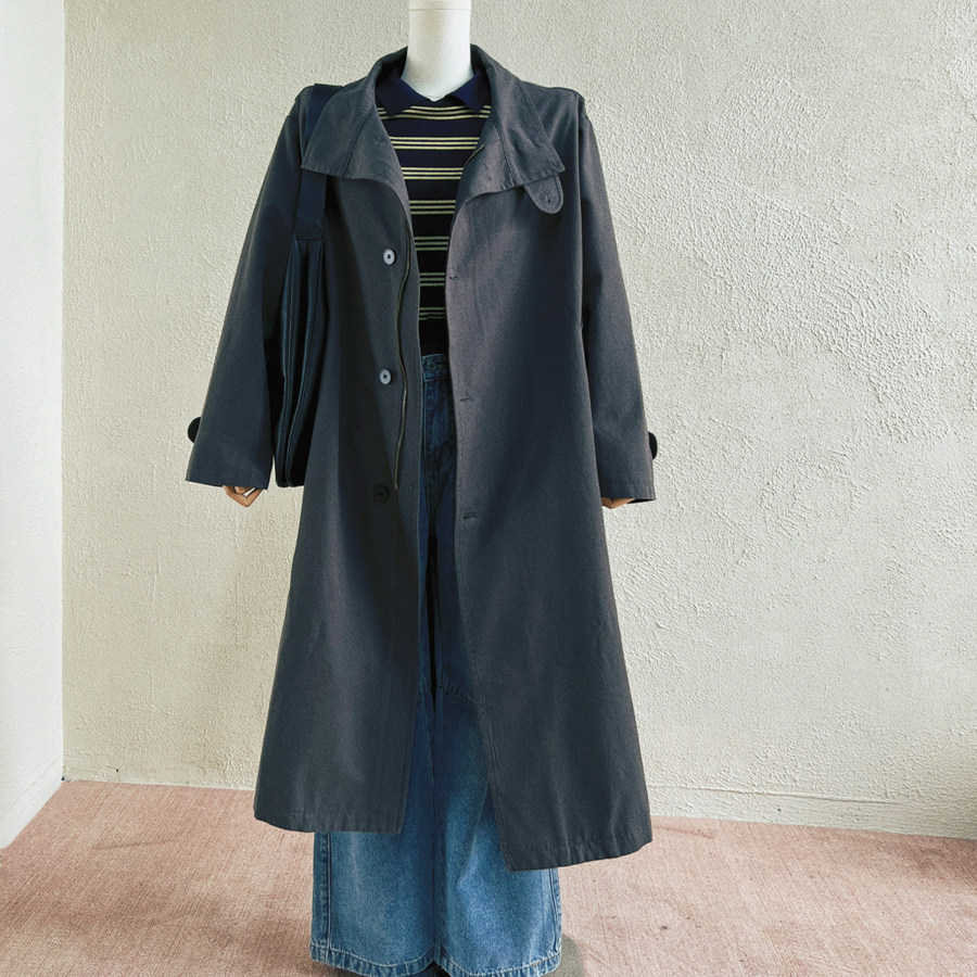 📚 白鹿明星同款复古文艺灰绿色宽松中长款风衣外套韩版百搭大衣