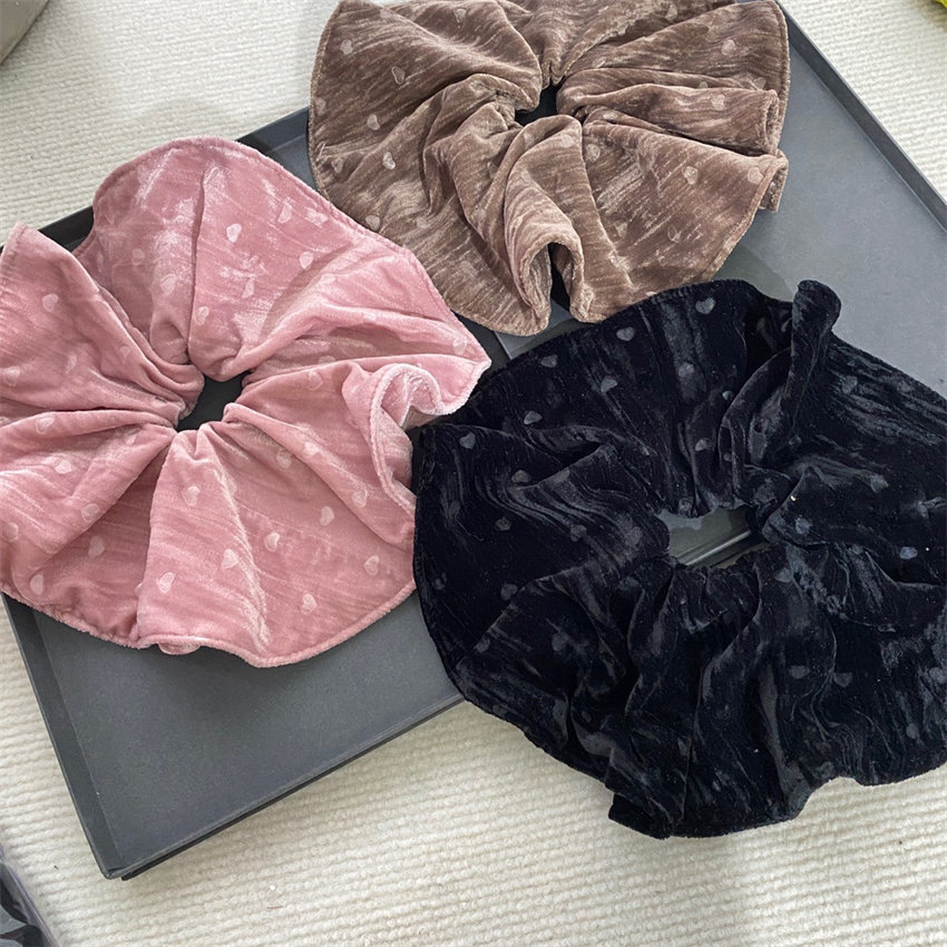 📚 韩版秋冬爱心丝绒发圈大肠头花发饰法式马尾大发圈高级感夸张头饰