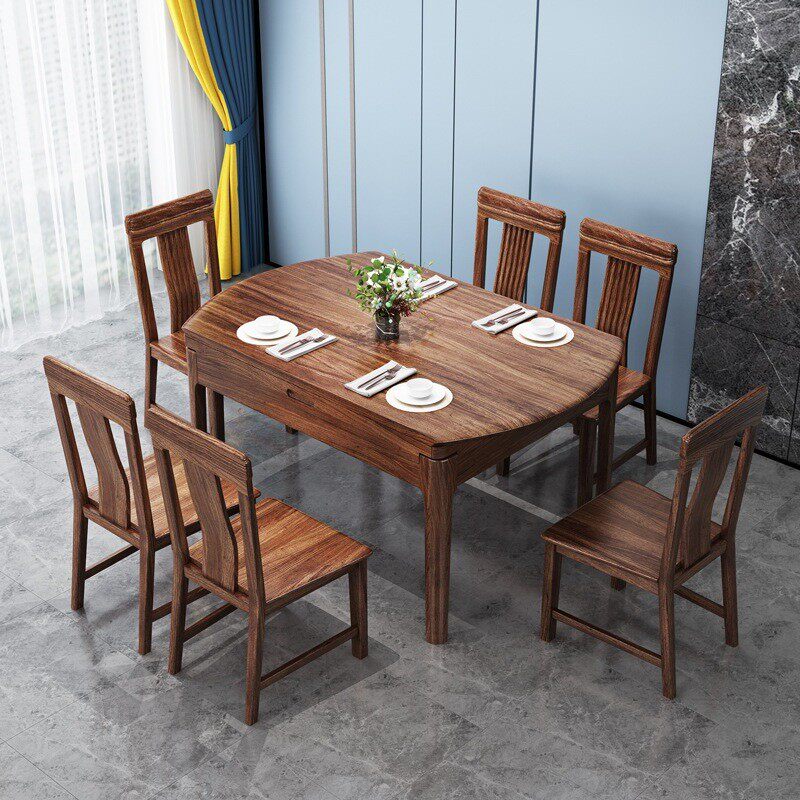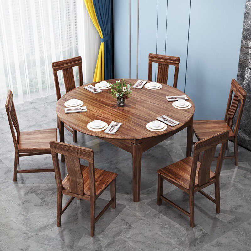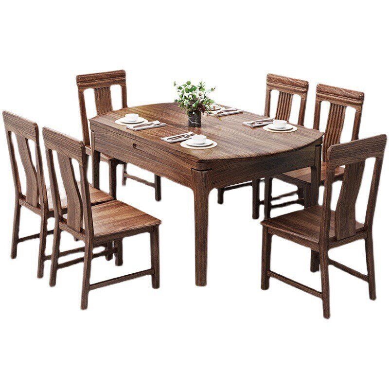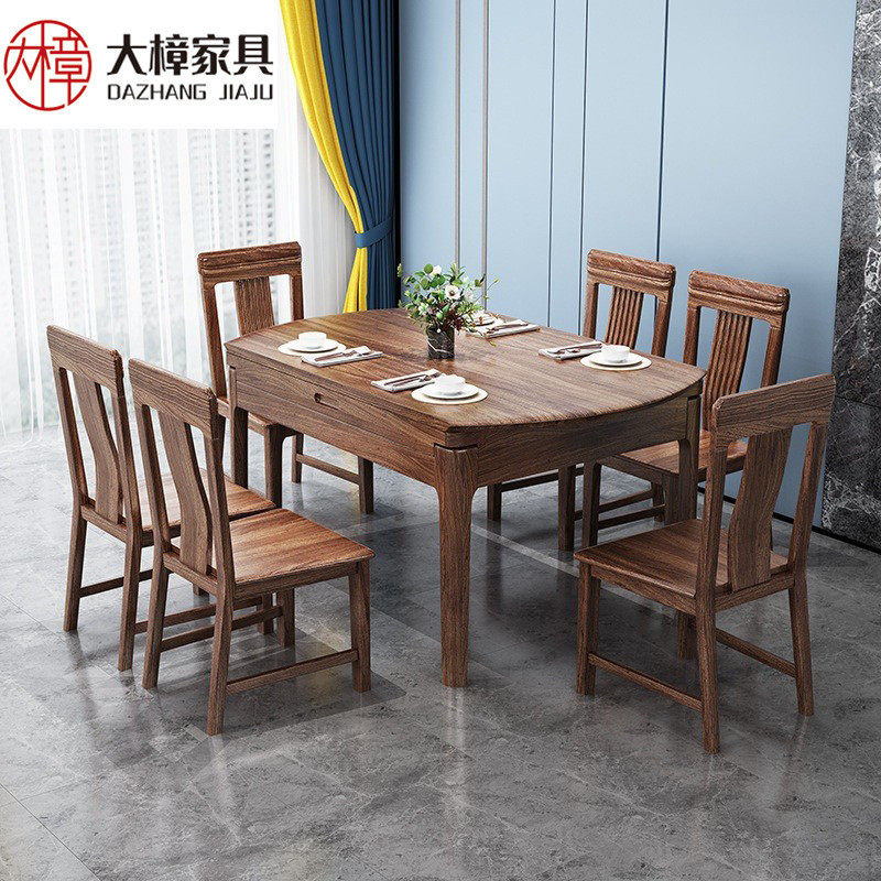 📚 乌金木餐桌长方形可变圆桌中式家用伸缩折叠全实木圆形餐桌椅组合