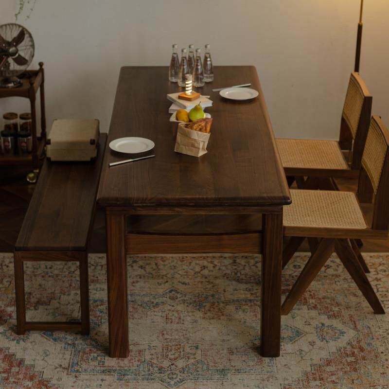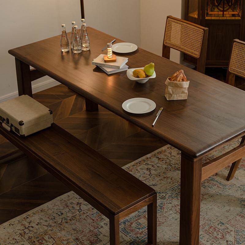 📚 北美黑胡桃木餐桌全实木大长桌子工作台长方形简约现代茶桌大板桌
