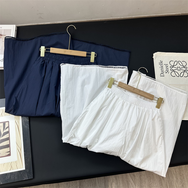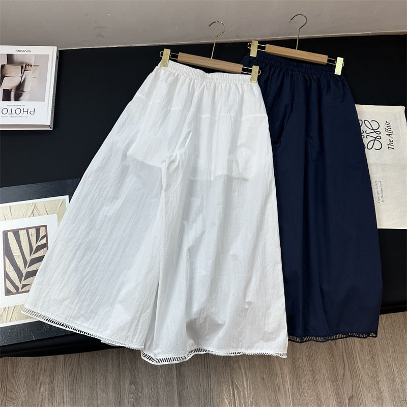 📚 空运纸袋裤!透气人棉松弛感8分A字大摆松紧高腰休闲阔腿百搭裙裤
