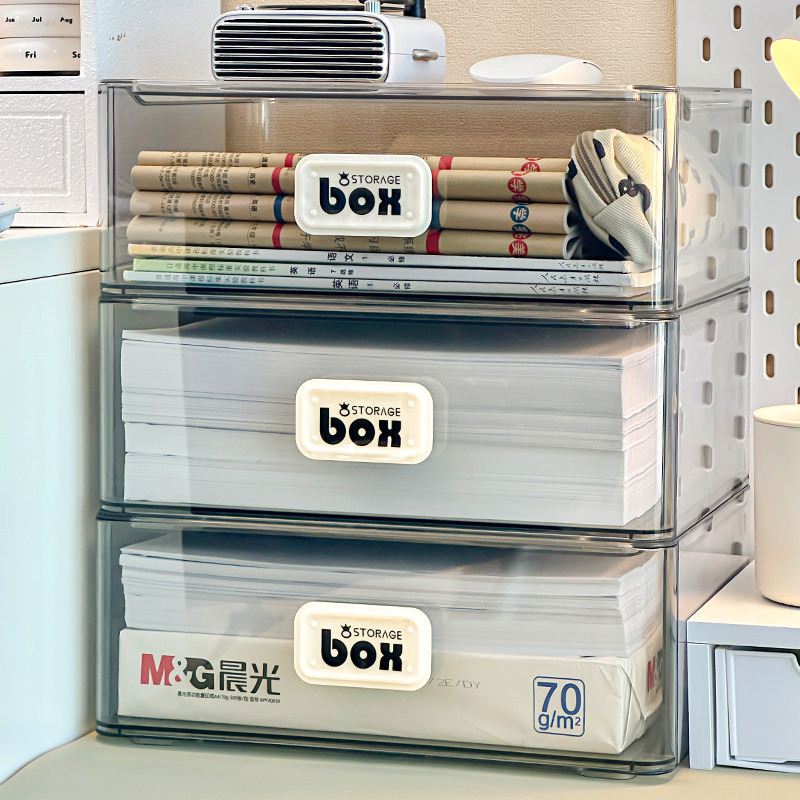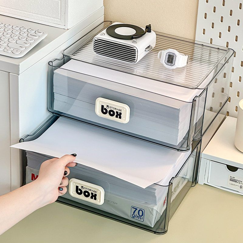 📚 工位收纳神器A4打印纸文件资料整理抽屉盒桌面透明办公杂物置物架