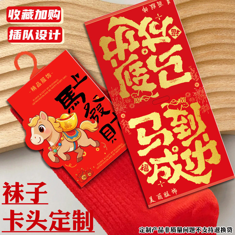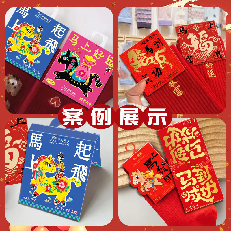 📚 袜子卡头定制新年红袜子包装页眉卡设计棉袜喜庆装饰折页卡定做