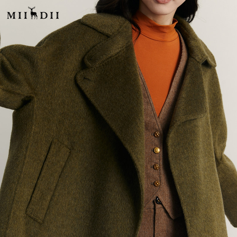 📚 谜底A型中长款呢子大衣女士2023冬季新品简约宽松羊毛呢234GD1452